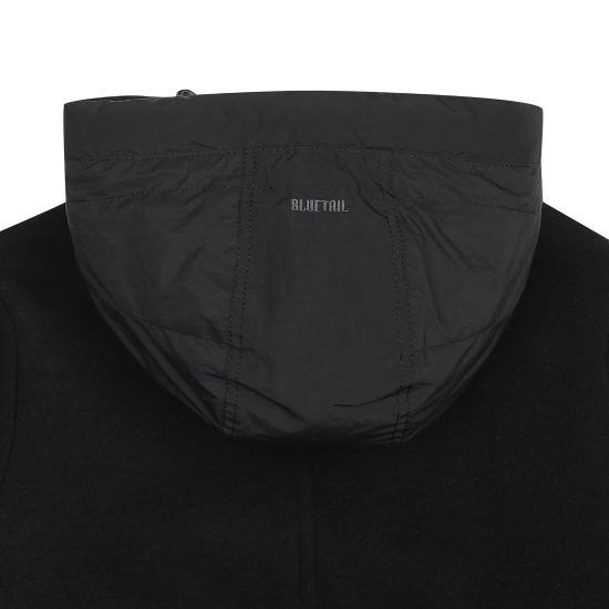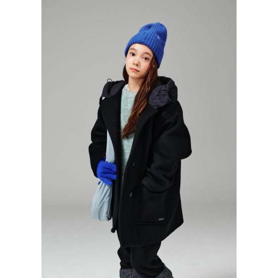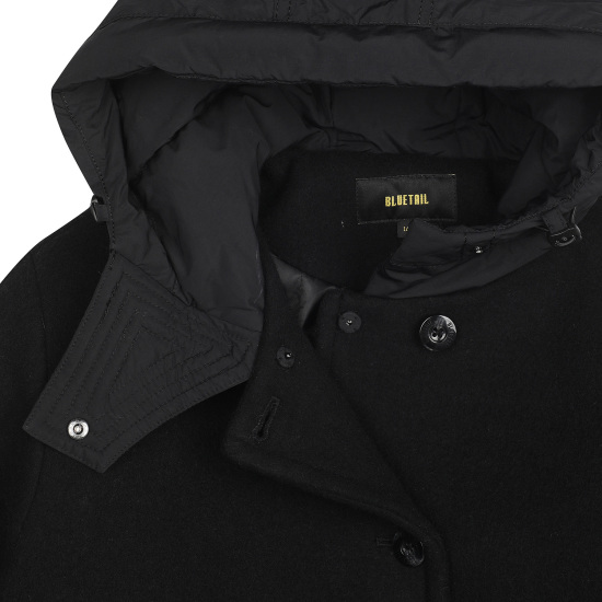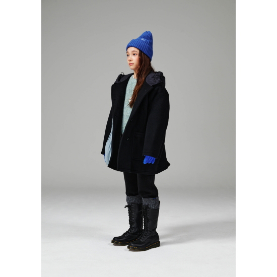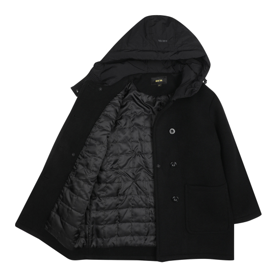 미드 기장의 오버핏으로 제안하여 캐주얼한 무드의 블랙 컬러 더블 울코트입니다. 화섬 소재의 후드 배색에 웰론 충전재을 사용하여 에어리함과 활동성을 가미한 상품입니다. 몸판 안쪽으로 퀼팅 안감을 주어 보온성을 높였습니다. 클래식한 코트의 영역을 캐주얼한 무드로 확장하여 블루테일만의 유니크함이 돋보이는 상품입니다.