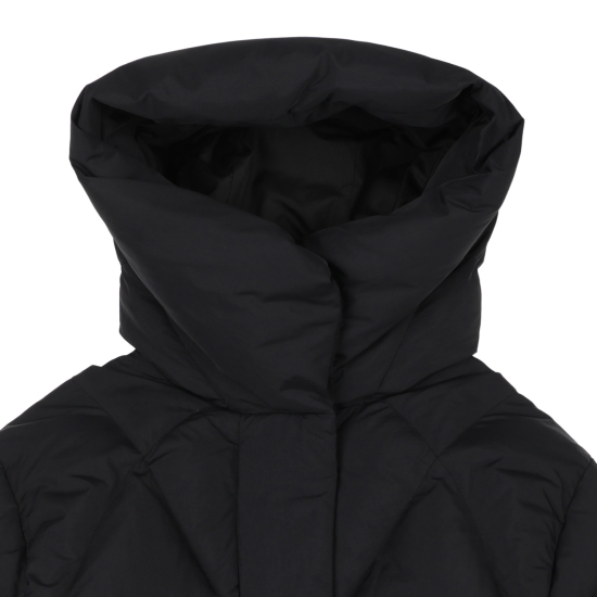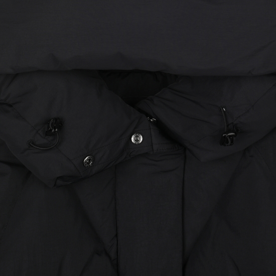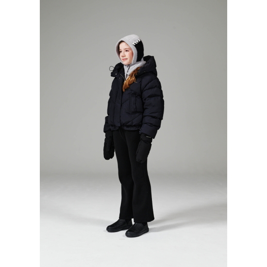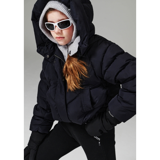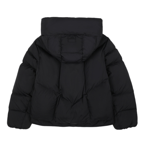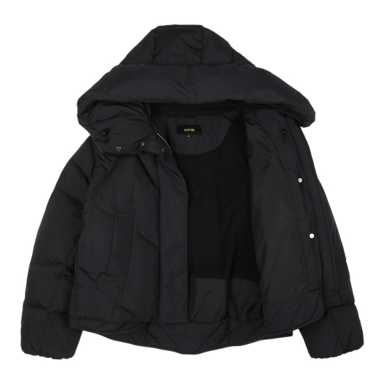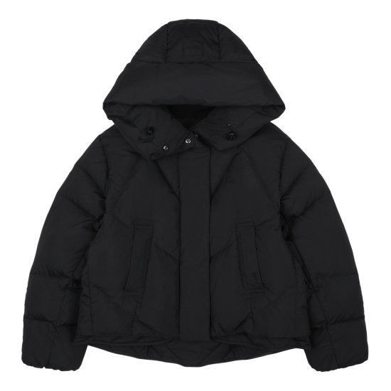 블랙 컬러 가벼운 나일론 소재로 제안하여 볼륨감이 물씬 느껴지는 숏 푸퍼 다운 점퍼입니다. 크롭 기장으로 제안해 쁘띠하게 코디하기 좋으며, 인체 라인을 따라 나뉘어진 사선의 유동적인 칸다운 스티치로 인하여 볼륨감이 매력적으로 보이는 상품입니다. 볼륨감을 해치지않는 포켓 디테일과, 얼굴을 포근하게 감싸는 입체적인 후드가 프로텍티브한 느낌을 더해줍니다. 하단의 퀼팅 플라이가 있어 크롭이 부담스럽게 느껴지지 않는 상품입니다.