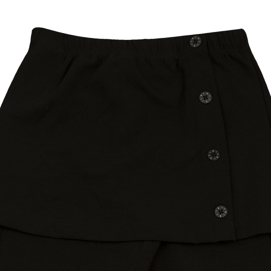 스커트가 레이어드 된 슬림 라인의 저지 팬츠입니다. 탈부착이 가능하여 팬츠 단독으로도 착용할 수 있고 스커트는 다른 코디에 함께 매치하여 스타일링할 수 있습니다.