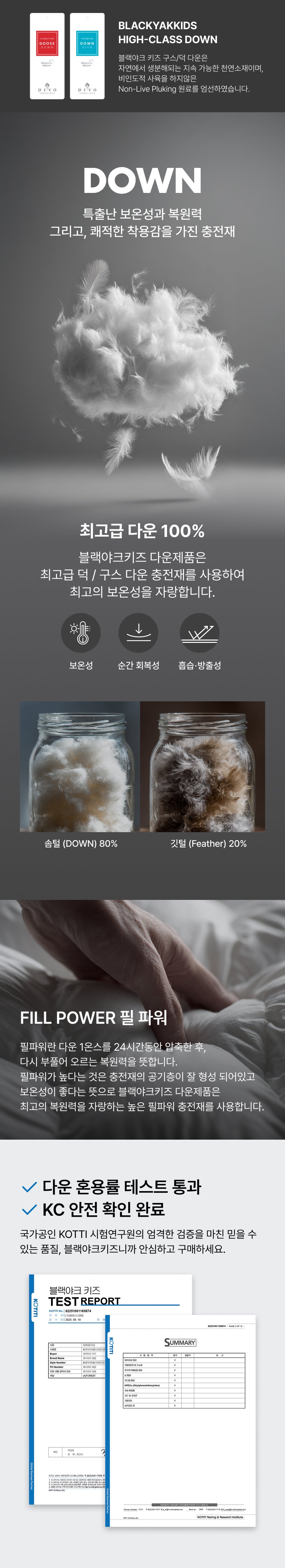 - RDS 덕다운 충전재(덕 솜털 80 :깃털 20)