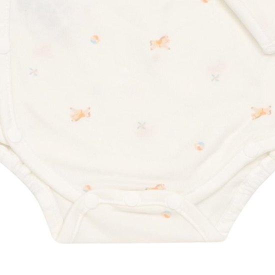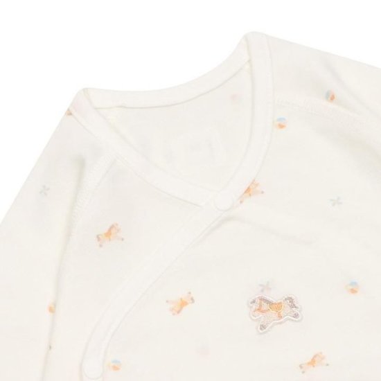말 캐릭터가 깔끔하게 디자인 된 예쁜 배내슈트로, 신생아의 체온을 포근하게 유지시켜 줍니다.