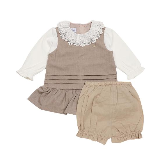 레이스 카라가 고급스러움을 더해주는 아기원피스입니다.