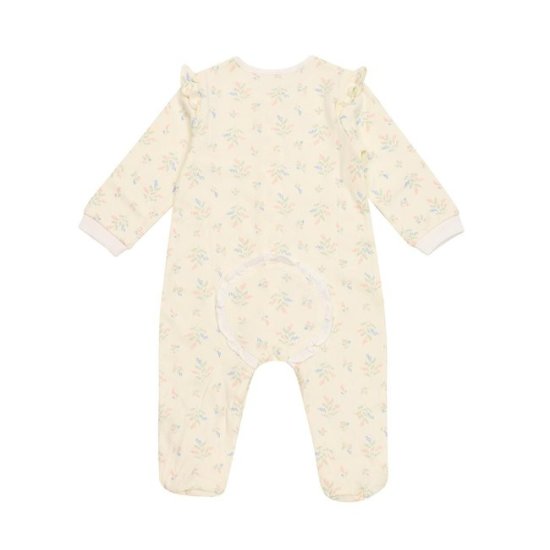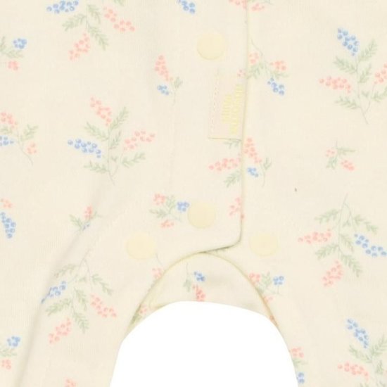 아주 부드러운 모달소재에 여성스러운 꽃무늬를 디자인 한 우주복과 턱받이 세트로, 아가들이 편안하고 예쁘게 입을 수 있는 우주복입니다.