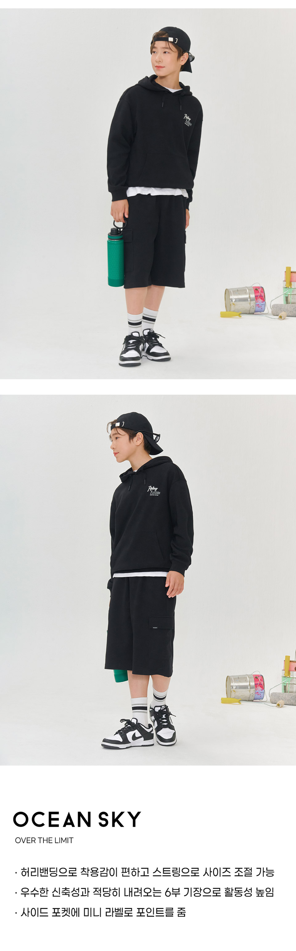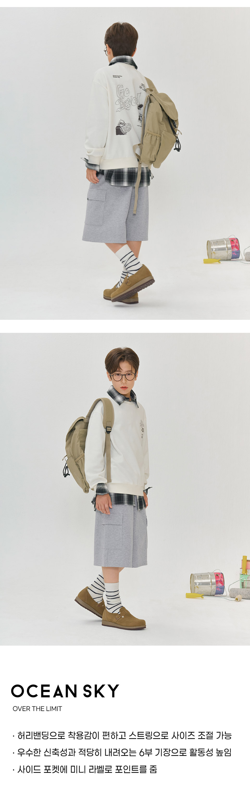 보리보리/오션스카이 남아 와이드 카고 버뮤다 트레이닝팬츠