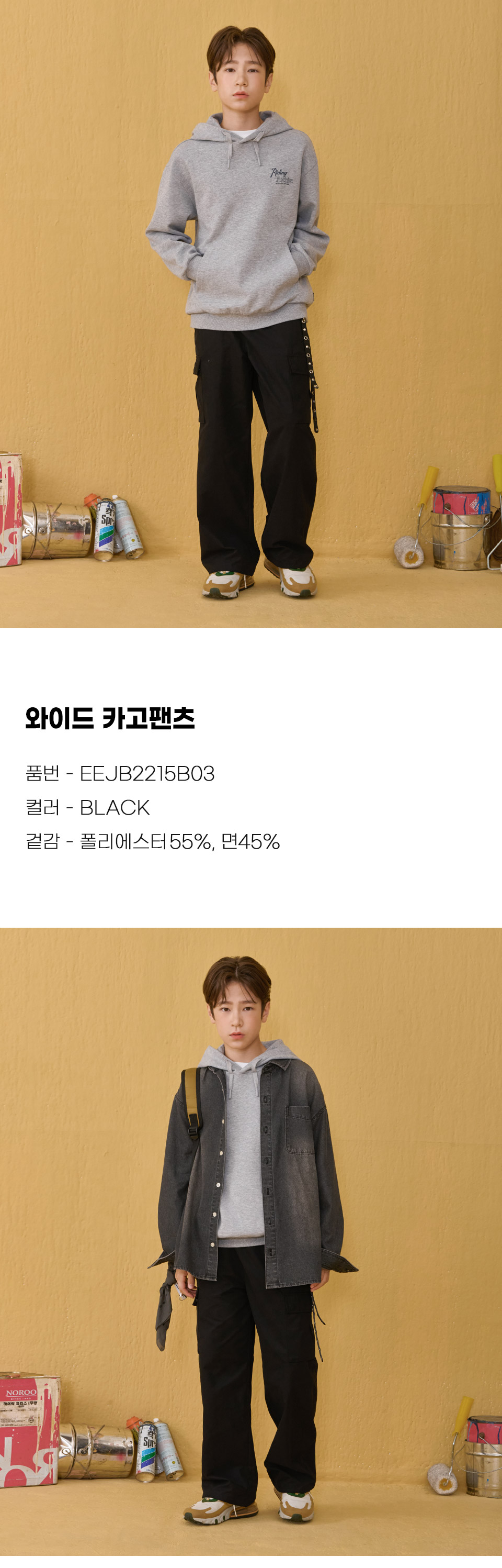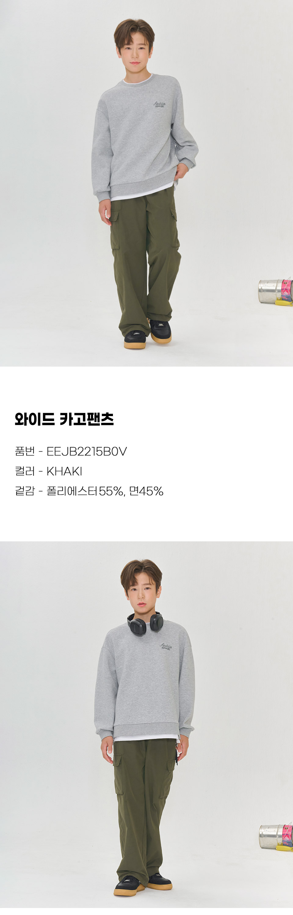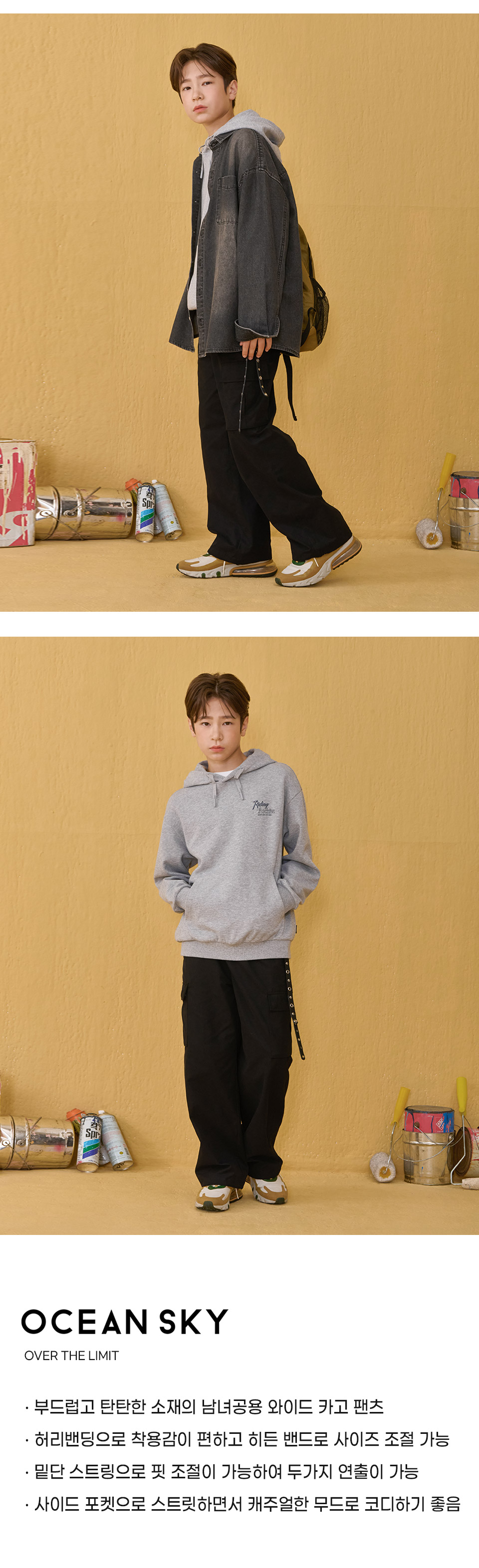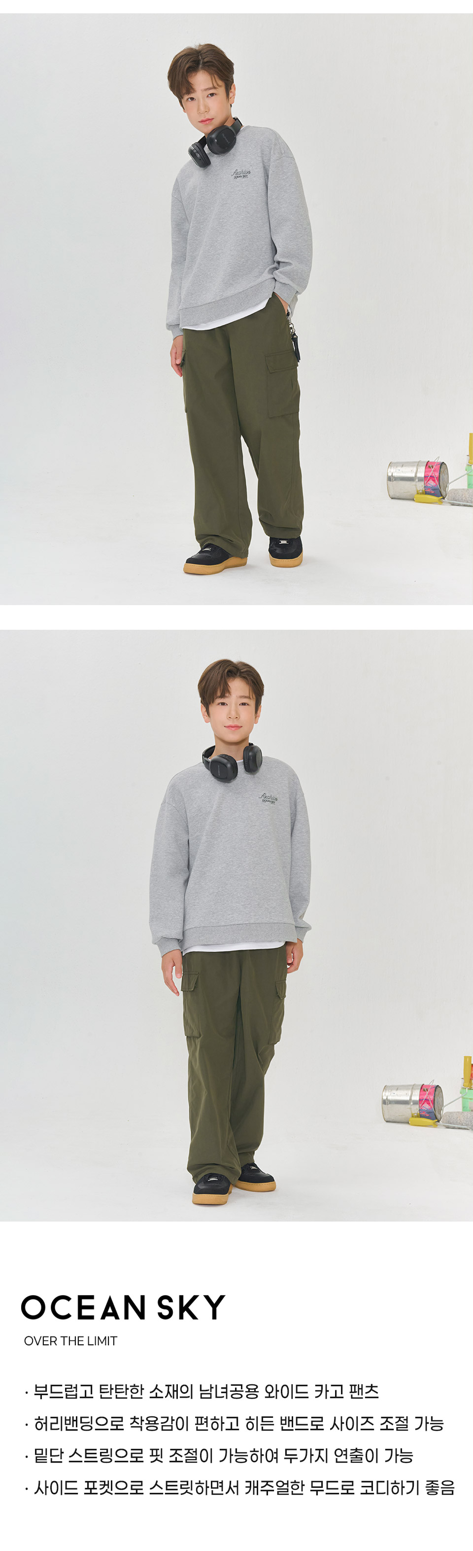 (현대Hmall)오션스카이 2color남녀공용 카고 포켓 와이드 밴딩팬츠