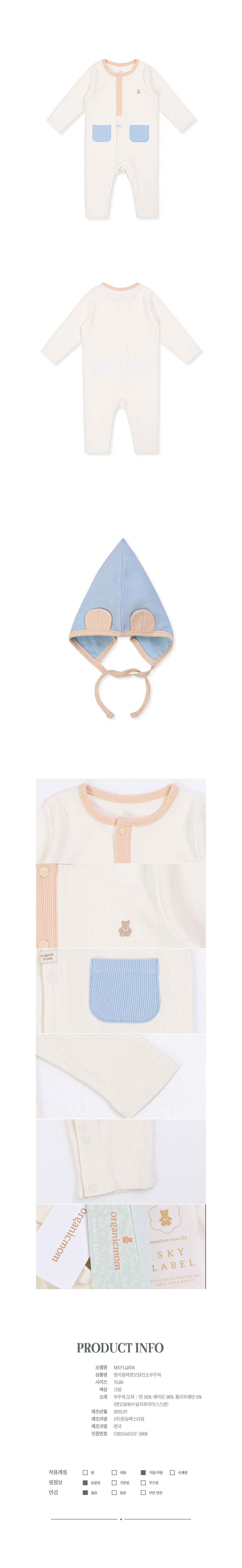 품명 및 모델명 : [오가닉맘]밀키블럭면모달긴소우주복 (MKFLQE04)