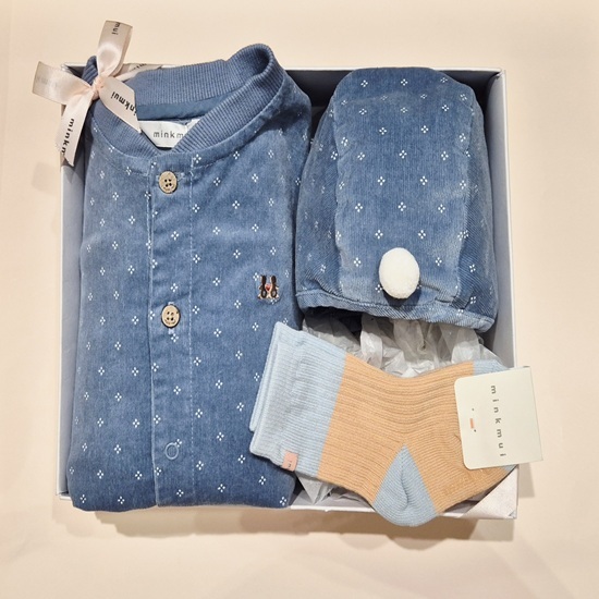 스판사가 함유된 코듀로이 원단으로 사용된 우주복과 모자SET,양말 아이템 입니다.