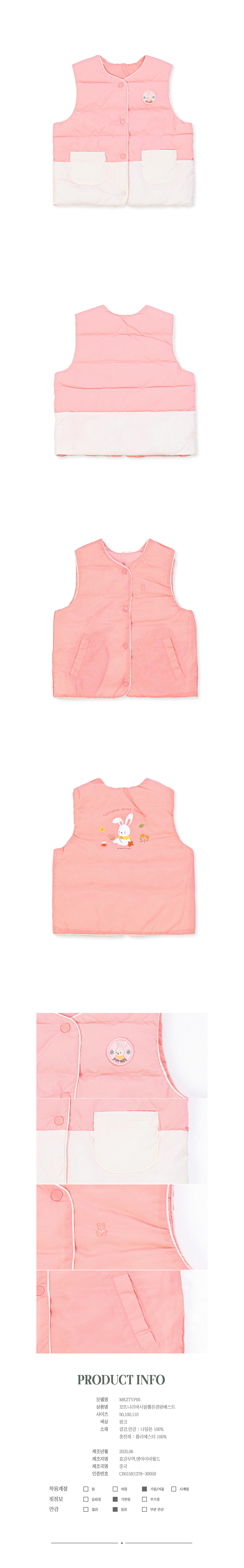 보리보리/오가닉맘 꼬뜨니리버시블웰론경량베스트 MKZTVP05
