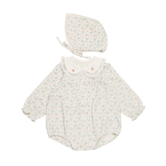사랑스러운 디자인이 이쁜 모자세트로 구성되어있는 바디슈트 입니다