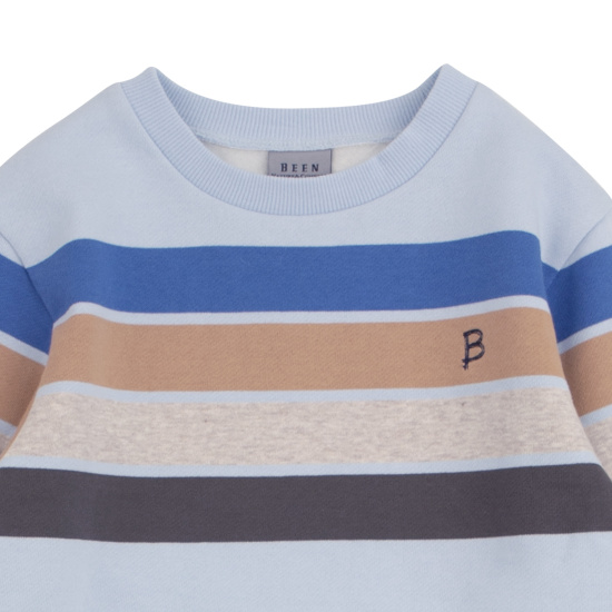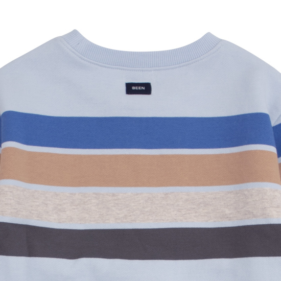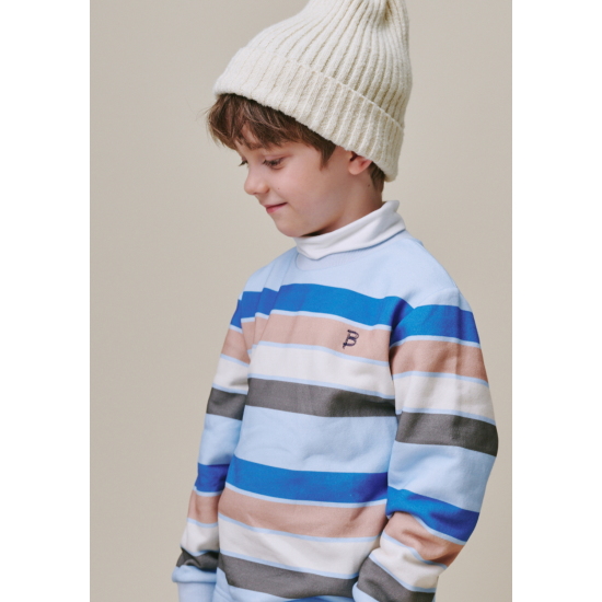 스카이 블루 컬러의 멀티 스트라이프 티셔츠