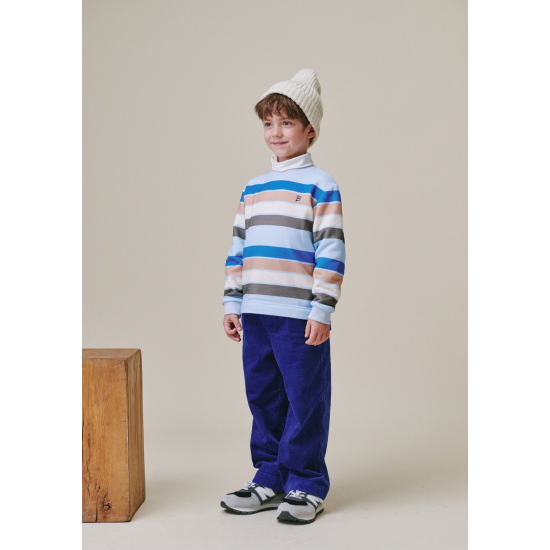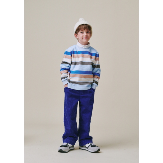 베이지, 블루 컬러의 코듀로이 팬츠 아이템과 함께 매치하여