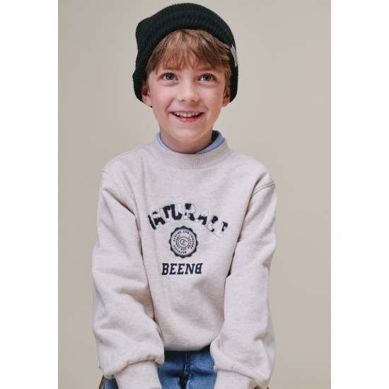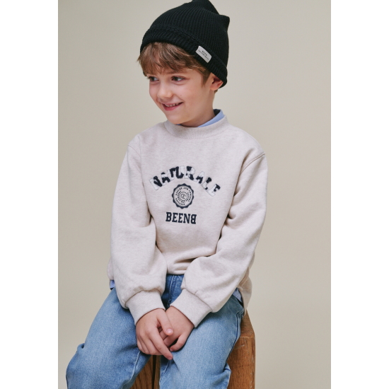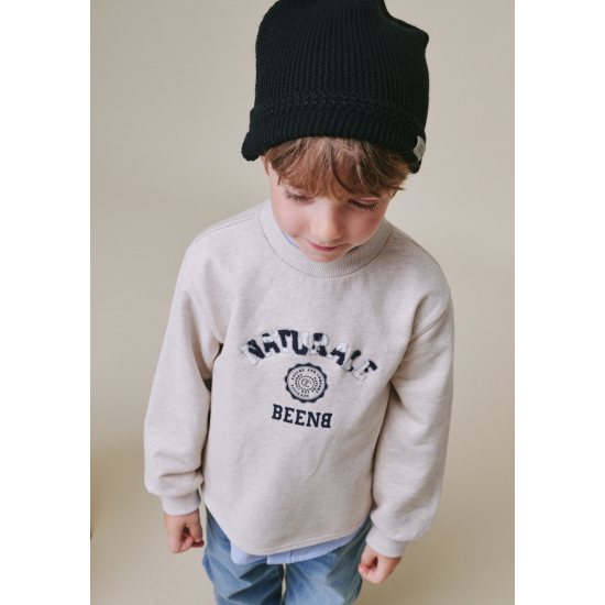 네츄럴한 컬러가 서로 믹스된 로고 부클 자수로 포인트를 준