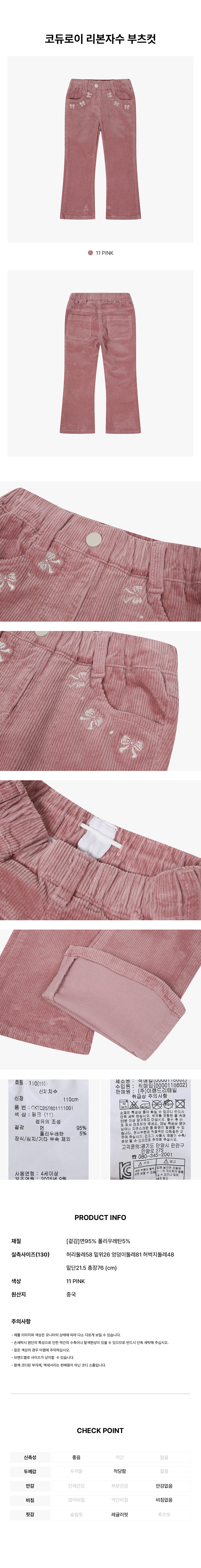 치크(아동) 코듀로이 리본자수 부츠컷 CKTC25T80
