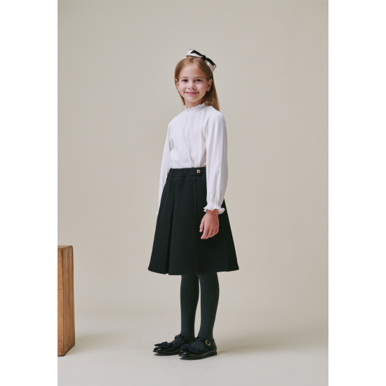 고급스러운 퀼팅 자카드 소재의 블랙 컬러의 A라인 스커트