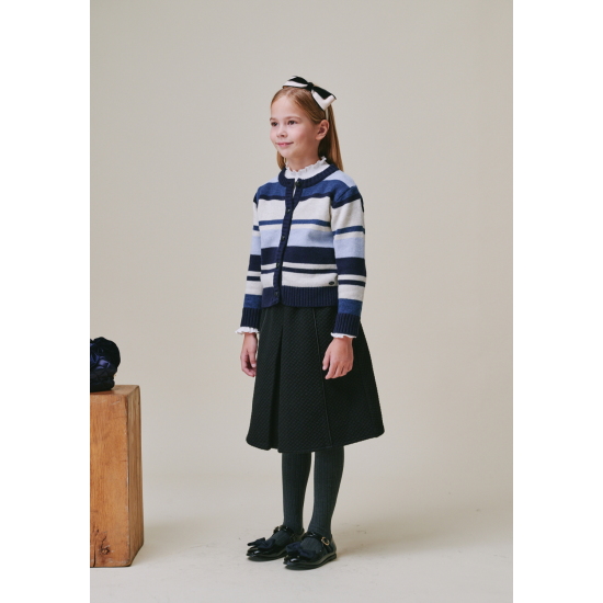 여아에게는 블랙 컬러의 퀼팅 스커트를 입고