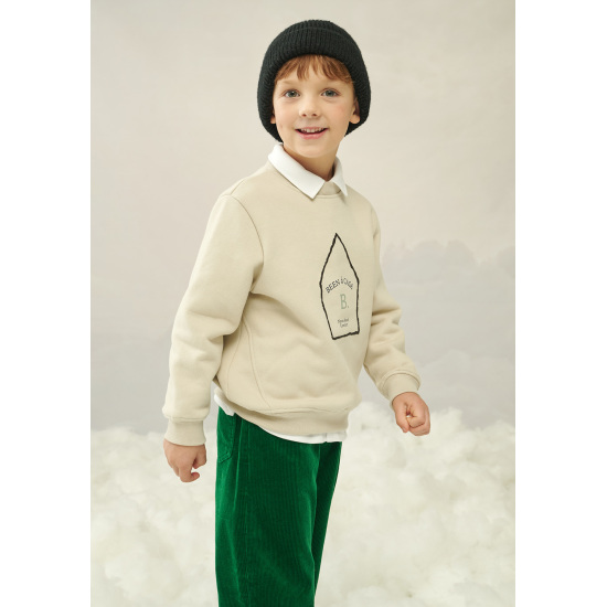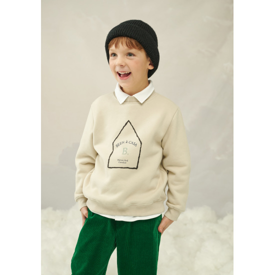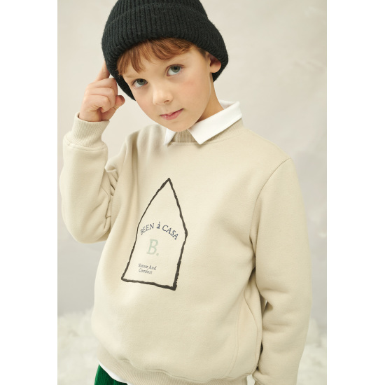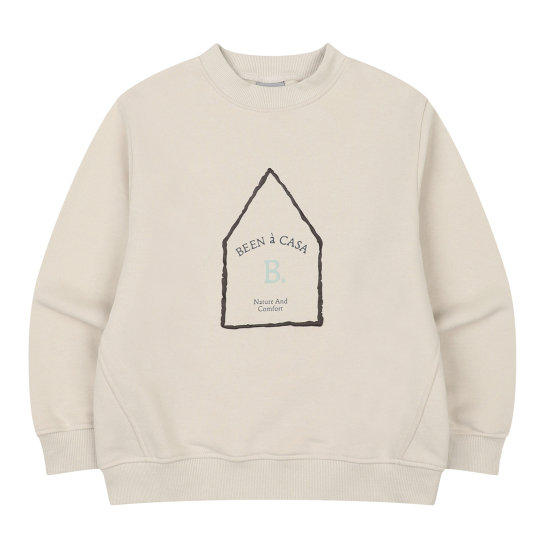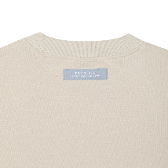 따뜻한 베이지 컬러의 맨투맨 티셔츠 아이템입니다.