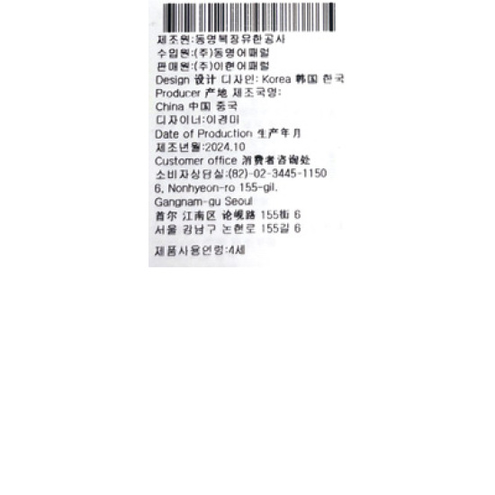 • 본 상품은 어린이제품 안전특별법 공급자 적합성 대상품목으로 아래의 어린이제품 안전특별법 공급자 적합성 을(를) 필하였습니다.
