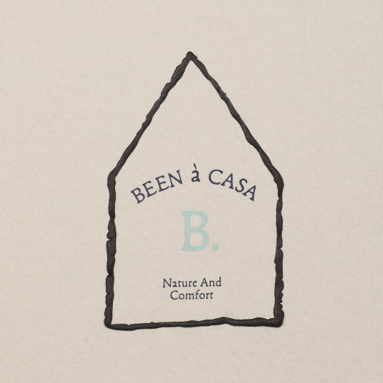집을 형상화한 오각형 형태의 프린팅이 돋보이는 아이템으로 브라운, 네이비, 민트 컬러의 조화가 베이지와 만나