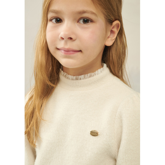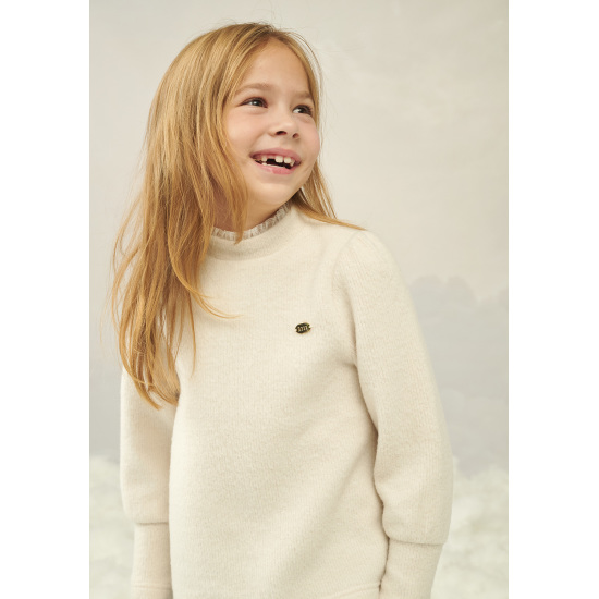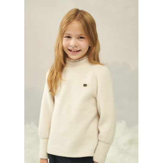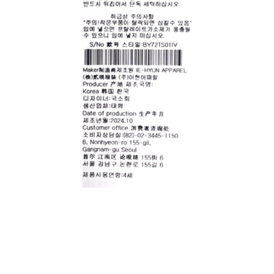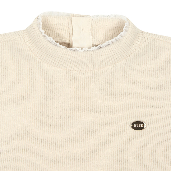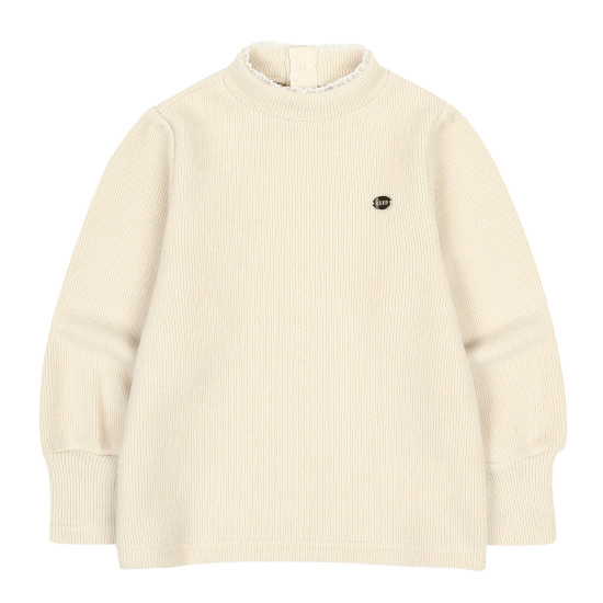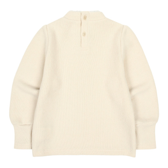 아이보리 컬러의 포근한 기모소재의 여아 티셔츠 입니다.