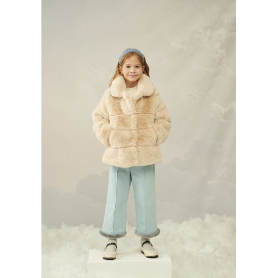 밑단의 그레이 페이크퍼 배색으로 사랑스러운 분위기를