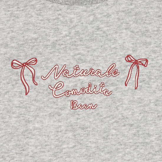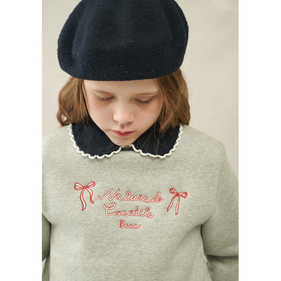 레드 컬러로 로고와 리본 자수가 경쾌한 포인트를 더해주어