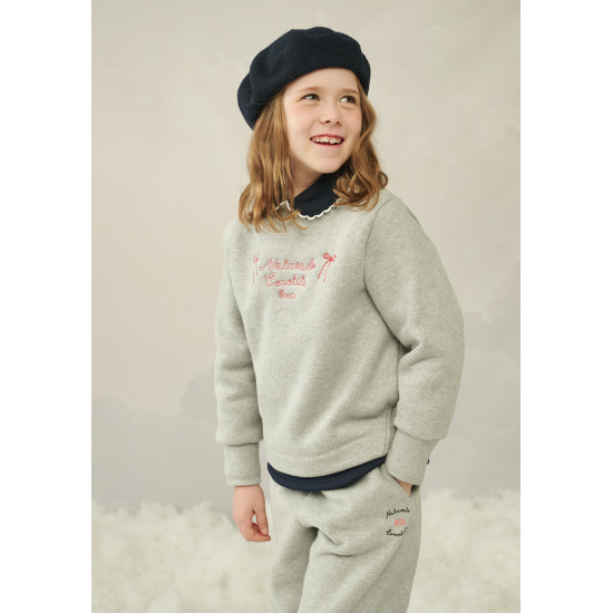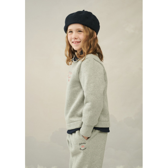밝은 멜란지 그레이 컬러의 여아 크롭 티셔츠입니다.