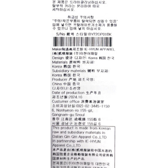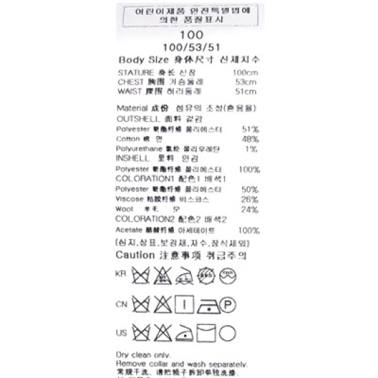 *이염이 될수 있으니 세탁시에는 반드시 카라를 분리하여 주십시오.