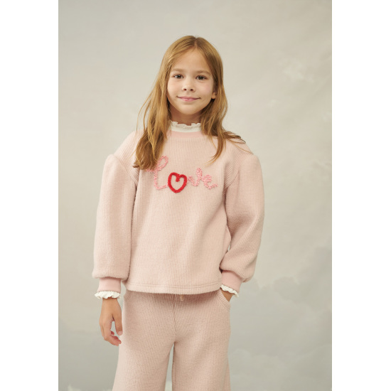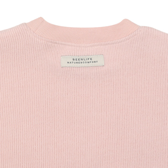 기모 골지 소재의 파스테리한 핑크 컬러의 티셔츠 아이템입니다.