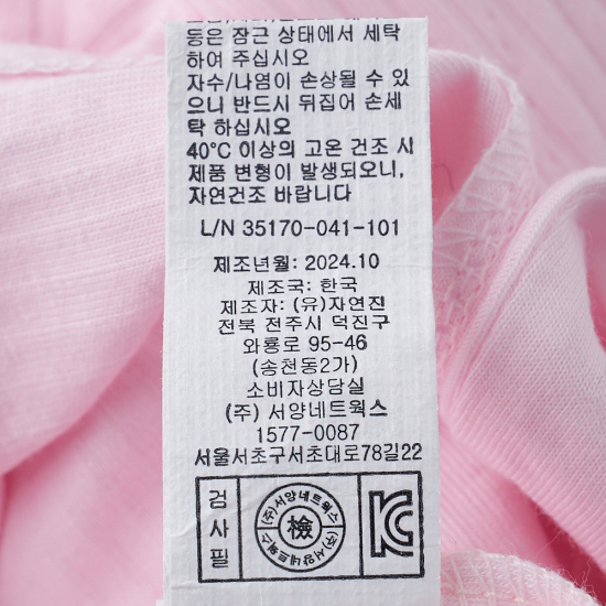 품질경영 촉 진법에 의한 품질 표시를 꼭 참조하여 세탁하십시오.