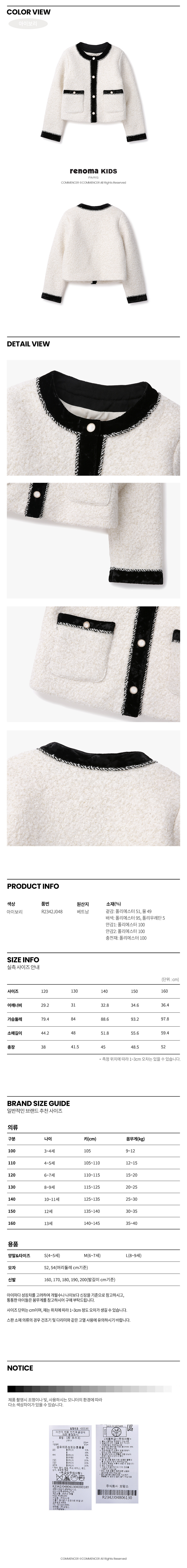 레노마키즈 R2341J048(여아 모직 트위드자켓)
