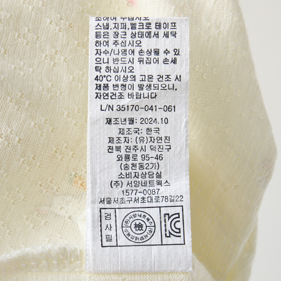 품질경영 촉 진법에 의한 품질 표시를 꼭 참조하여 세탁하십시오.