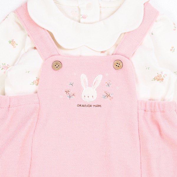 제품소재 : 모자주원단폴리에스터 50% 레이온 45% 폴리우레탄 5%, 배색: 면 100% 티셔츠: 면 95% 폴리우레탄 5% 오버올 주원단 폴리에스터 50% 레이온 45% 폴리우레탄 5%, 배색 면 70% 폴리에스터 30%