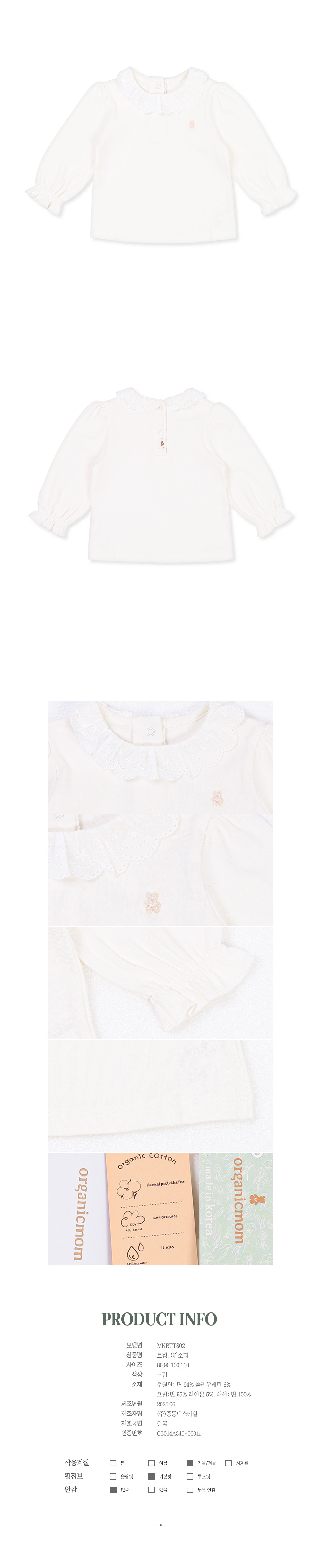 제품소재 : 주원단: 면 94% 폴리우레탄 6%,프릴:면 95% 레이온 5%, 배색: 면 100%