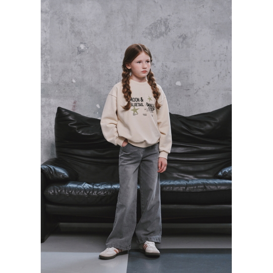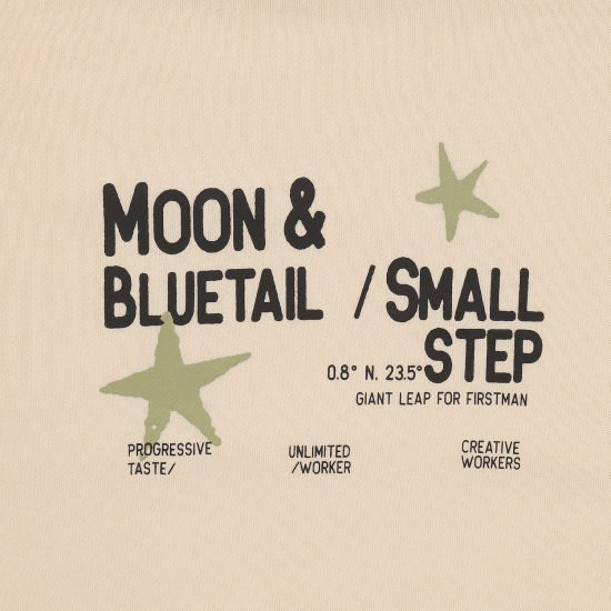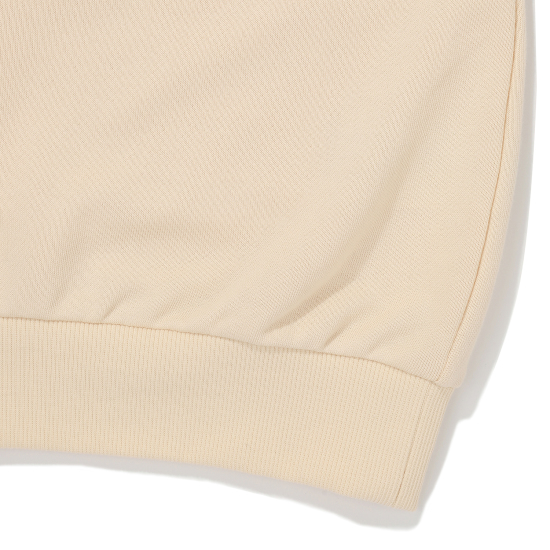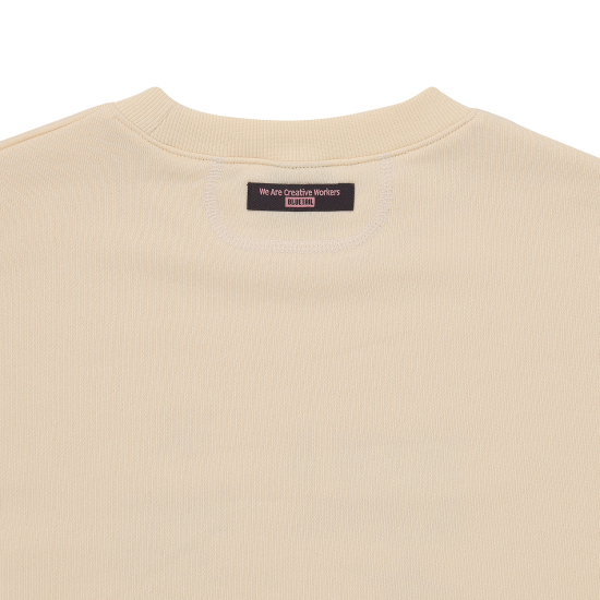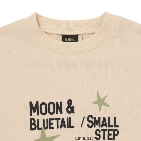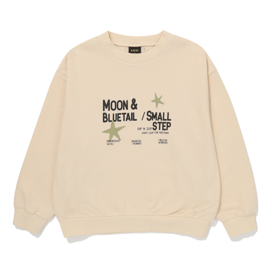 소프트한 옐로우 컬러가 매력적인 스웻 셔츠입니다. 넉넉한 상동에 살짝 힙을 덮는 기장으로 제안하였습니다. 몸판 밑단과 소매 밑단은 립으로 살짝 모아 약간의 볼륨감을 준 스타일입니다. 앞판에 빈티지한 레터링과 별 나염을 스미듯이 모노톤 블랙컬러와 톤온톤 옐로우 컬러로 제안하였습니다.