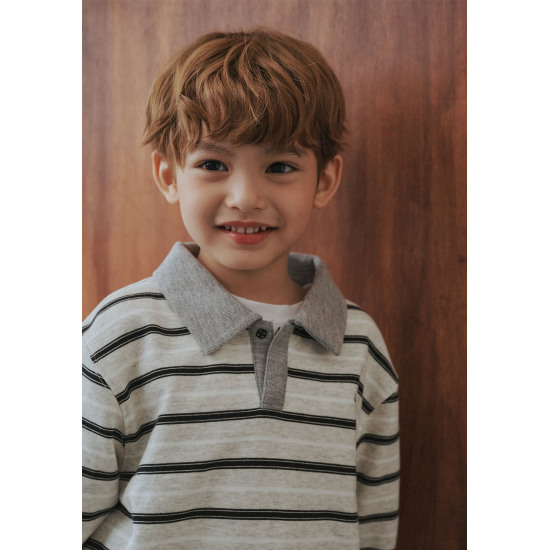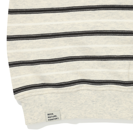 멜란지 배경에 블랙&화이트 컬러로 스트라이프 패턴을 디자인해 세련되면서 트렌디한 티셔츠입니다. 쮸리 소재로 편안하며, 카라와 단작 부분을 그레이 컬러로 포근하면서도 뉴트럴한 컬러 포인트를 더해주어 가을의 무드를 한껏 즐길 수 있는 아이템입니다. 블루 컬러 또는 로우 데님팬츠, 편안한 면스판 팬츠들과 다양하게 활용할 수 있습니다.