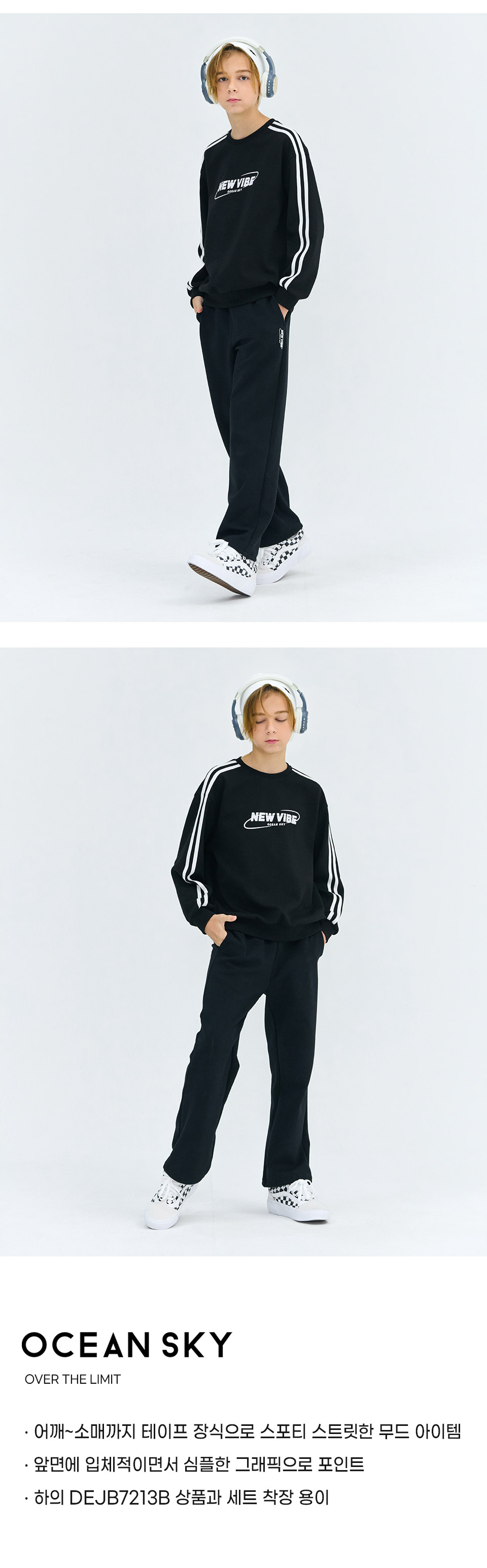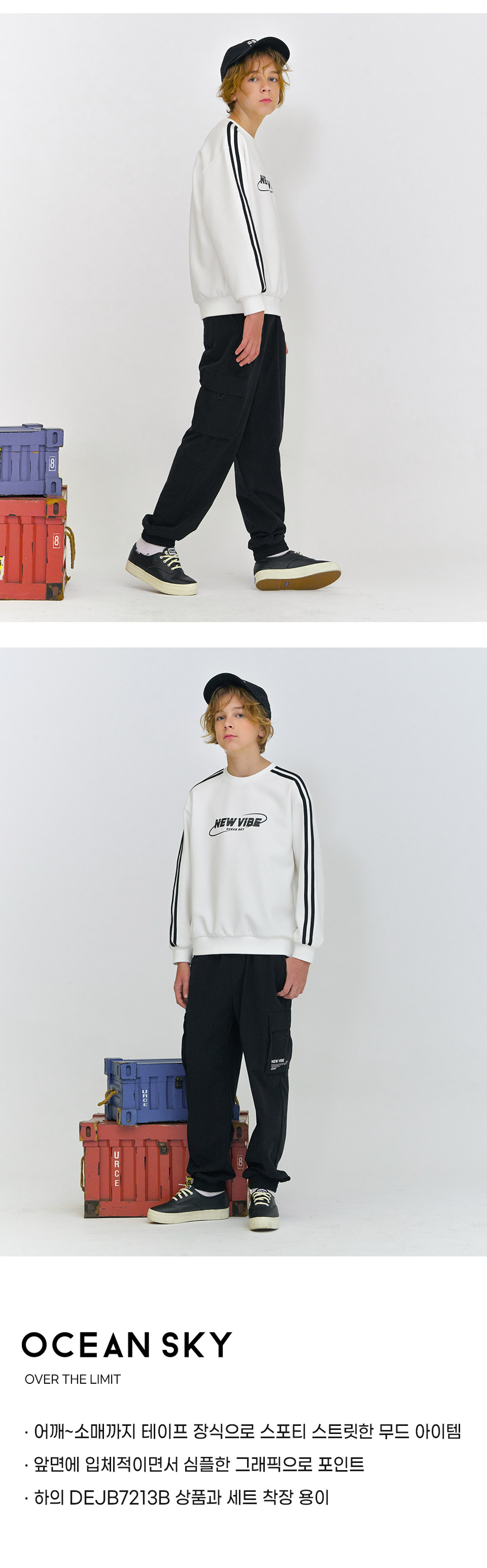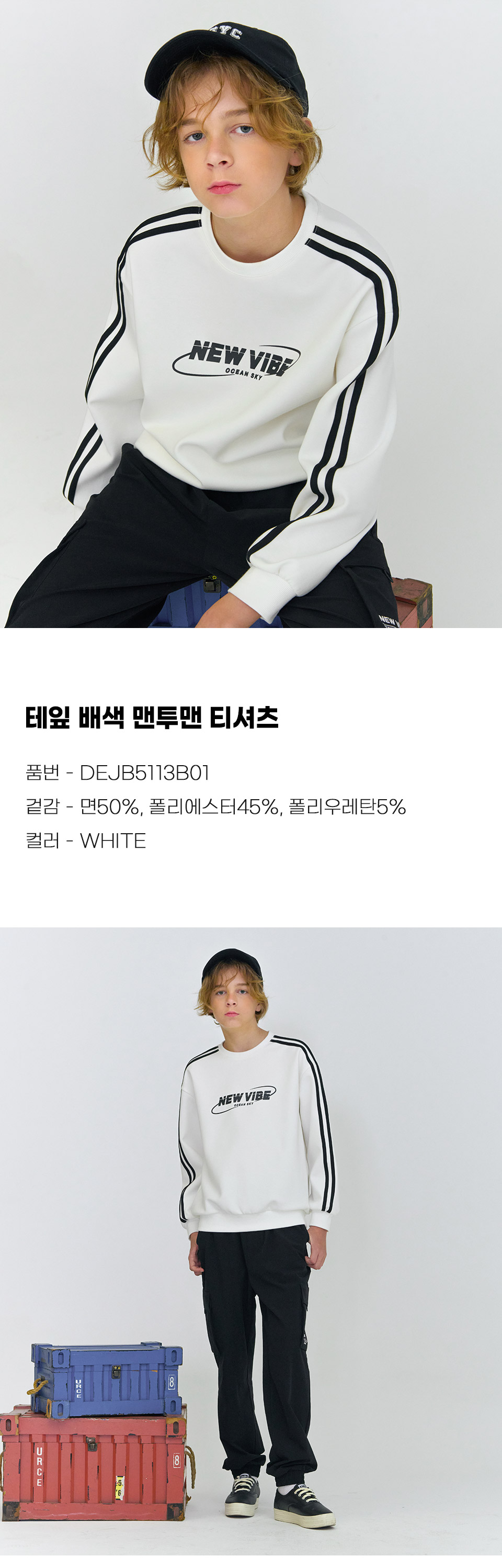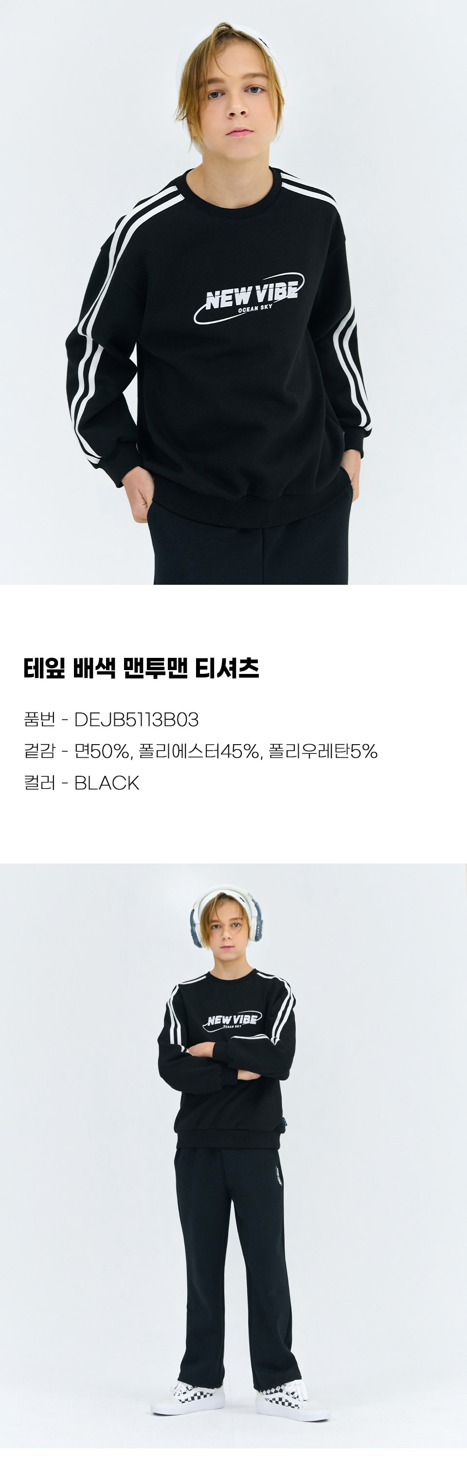 보리보리/오션스카이 남아 소매 라인 배색 맨투맨