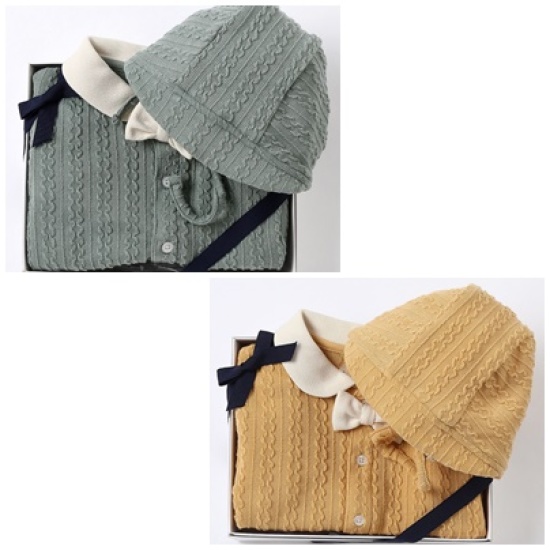 니트조직의 바디수트 세트입니다. 클래식한 니트조직의 져지소재로 편하면서 큐트하게 착용하기 좋습니다.