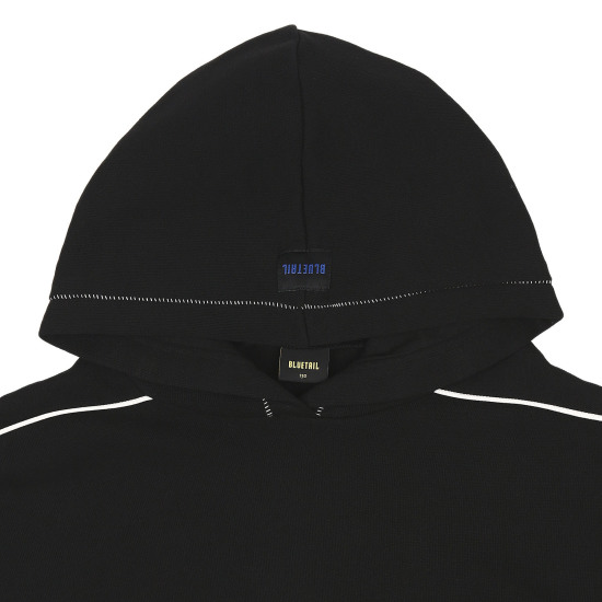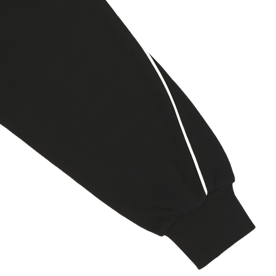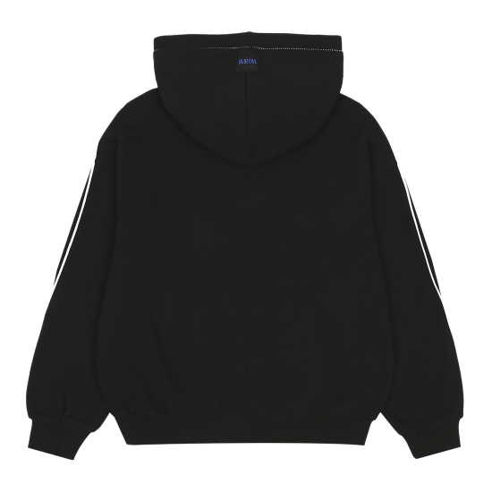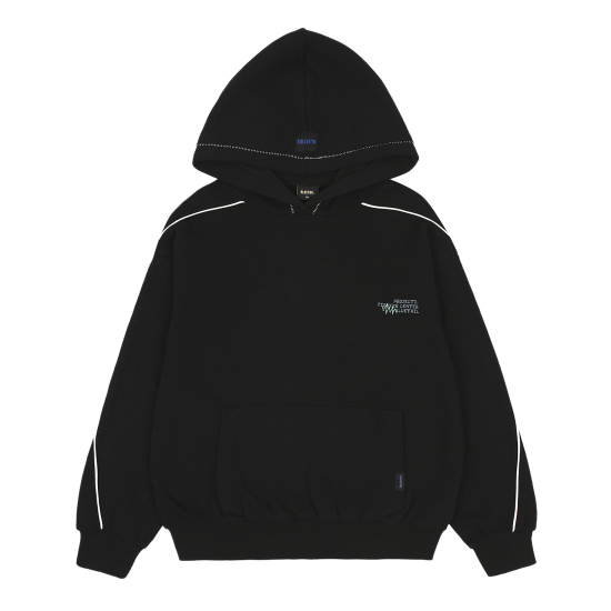 블랙 컬러의 파이핑라인이 포인트인 후드 티셔츠입니다. 후드와 소매에 걸쳐진 화이트컬러 파이핑 라인이 스포티한 감성을 느끼게 하는 상품입니다. AYI3PT01BK인 셋업 바지와 함께 했을 때 라인감이 더욱 강조되어 진보적인 느낌을 주는 아이템입니다.