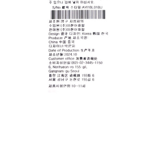 • 본 상품은 어린이제품 안전특별법 공급자 적합성 대상품목으로 아래의 어린이제품 안전특별법 공급자 적합성 을(를) 필하였습니다.