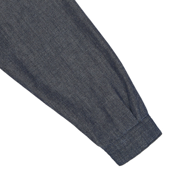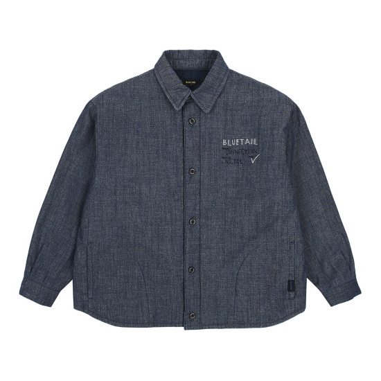 감성적인 블루 컬러로 제안한 해지 데님 패딩 셔츠입니다.미니멀한 디자인에 레터링 자수로 컬러 포인트를 주었습니다.몸판쪽 안감은 다이아퀼팅 누빔으로 자켓처럼 입을 수 있는 보온성 있는 아이템입니다.