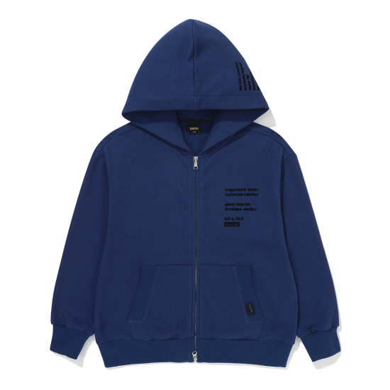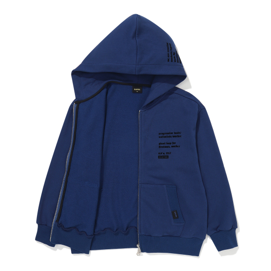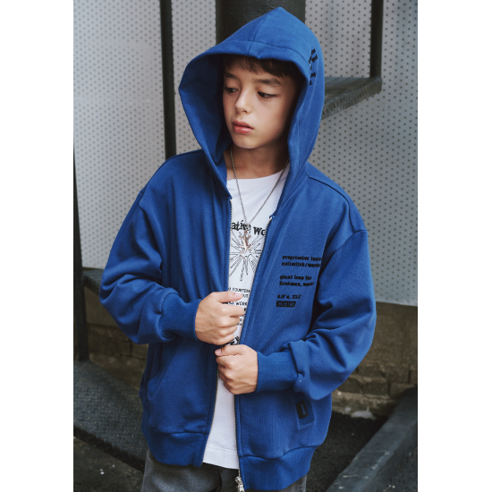 딥한 코발트블루 컬러로 제안한 후드 집업 점퍼입니다. 스트릿스러운 후로킹 레터링나염과 라벨로 컬러 포인트를 주었습니다. 한 치수 큰 사이즈를 선택해 오버사이즈 핏으로 연출하여 스트릿앤 힙한 감성으로 연출할 수 있습니다.
