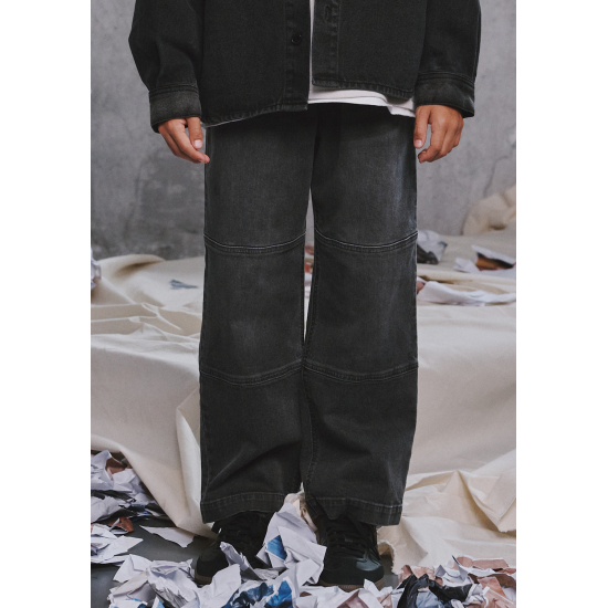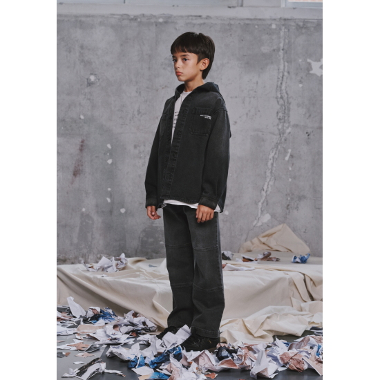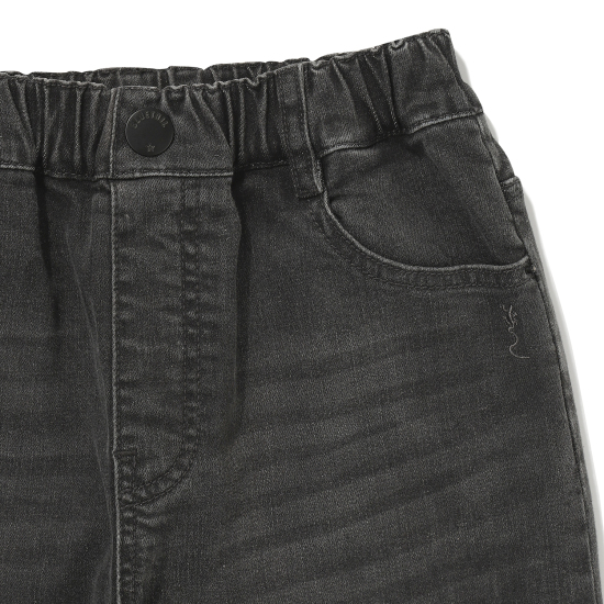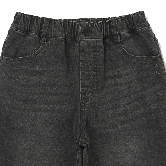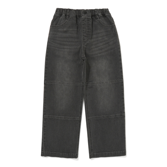 워커스타일의 미드톤 그레이 컬러 세미 와이드핏 일자 데님 팬츠입니다. 전체 통고무줄로 편안하게 착용할 수 있고, 무릎 절개 디테일로 워커 느낌의 포인트를 주었습니다. 라벨과 자수로 컬러 포인트를 주었습니다.