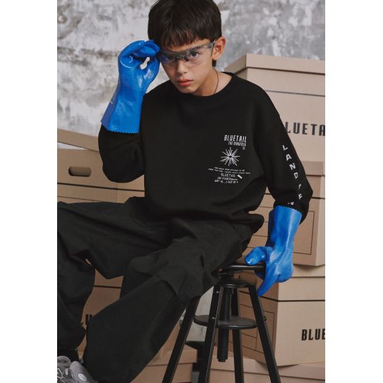 데일리로 착용할 수 있는 블랙 컬러의 맨투맨입니다. 뒷 넥 아래 깊게 삼각 디테일로 스포티한 포인트를 주었습니다. 한쪽 가슴과 소매에 긴나염으로 포인트 주어 착용 후 팔을 움직일 때마다 보여지는 스트릿한 무드가 더욱 매력적입니다.