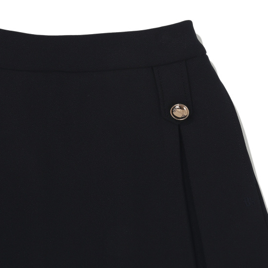 미니멀한 디자인이 돋보이는 에이라인 스커트입니다. 맞주름과 고급스러운 흑골드 단추 디테일이 포인트이며, 깔끔하게 떨어지는 실루엣의 타운 스타일링을 연출할 수 있습니다. 차콜 가디건과 화이트 프릴 블라우스와 함께 세련된 타운 스타일링을 할 수 있습니다.
