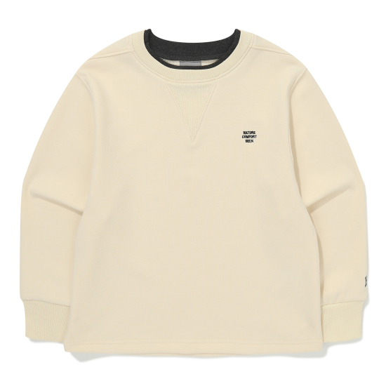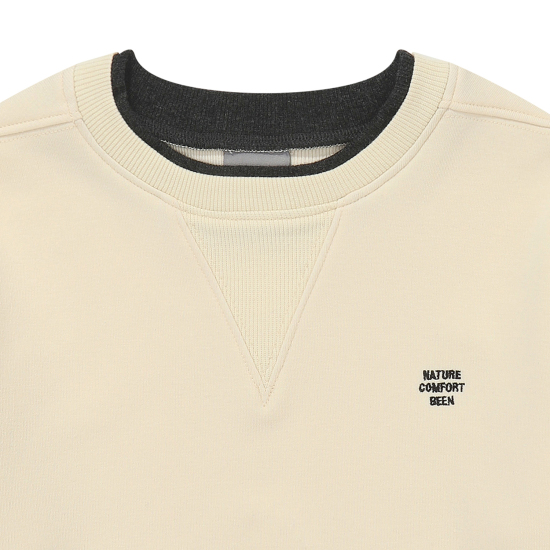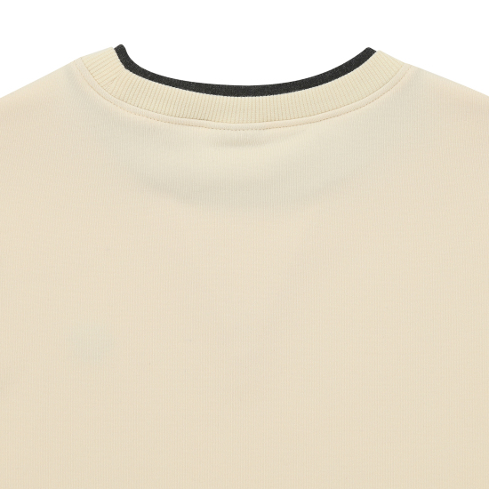 밝고 내추럴한 아이보리 컬러의 도톰하고 부드러운 느낌이 돋보이는 티셔츠입니다. 넥라인에 차콜 컬러의 배색을 사용하여 선명하면서 레이어드 한듯한 스타일링을 보여줄 수 있는 아이템입니다. 유니섹스 아이템으로 데님 팬츠, 가디건, 가벼운 점퍼와 함께 따뜻한 느낌의 스타일링을 연출할 수 있습니다.