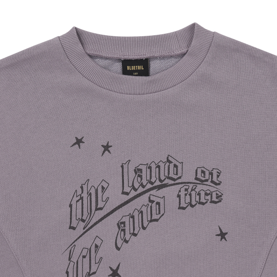 채도 낮은 핑크 컬러의 맨투맨입니다. 약간 크롭한 기장에 밑단과 소매단을 립으로 조여 귀여운 실루엣 연출이 가능하며 사이드에 라운드 절개를 넣어 볼륨감을 더한 상품입니다. 앞판에 라인 레터링을 별과 번개를 믹스하여 귀엽게 포인트 주었습니다.