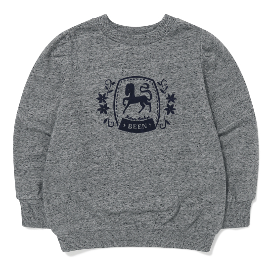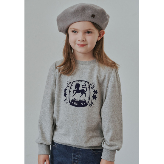 그레이 컬러의 라운드 네크라인 맨투맨 티셔츠입니다. 몸에 적당히 잘 맞는 실루엣으로 소매 부분에 살짝 셔링을 주어 편안하고 여성스러운 분위기를 연출합니다. 선명한 네이비 컬러의 승마클럽의 포인트가 럭셔리하며, 가을 시즌에 스마트한 이미지를 더해줍니다. 여아 와이드 블루 데님과 함께 코디하여 세련된 스타일링을 연출할 수 있습니다.