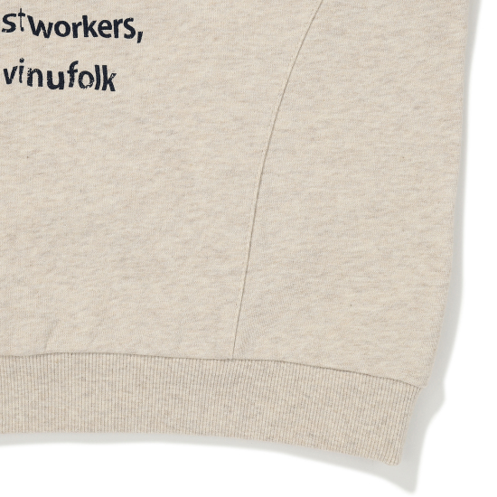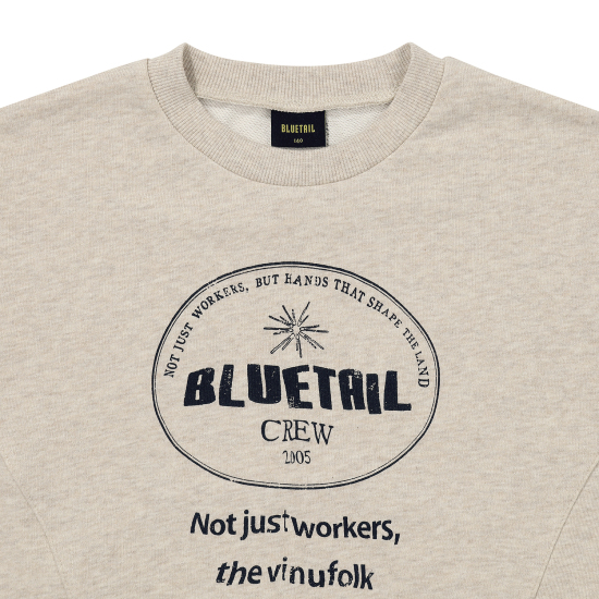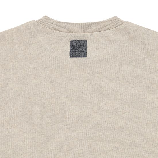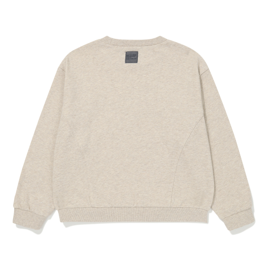라이트 베이지 컬러의 맨투맨입니다. 약간 크롭한 기장에 밑단과 소매단을 립으로 조여 귀여운 실루엣 연출이 가능하며 사이드에 라운드 절개를 넣어 볼륨감을 더한 상품입니다. 앞판에 프레피하면서도 빈티지한 무드의 심볼 레터링 나염으로 포인트 주었습니다.