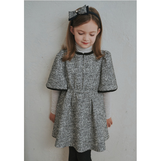 (롯데백화점)블랙 트위드 케이프 원피스BZ54OP04BK