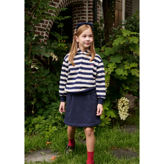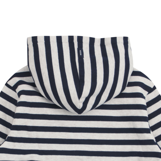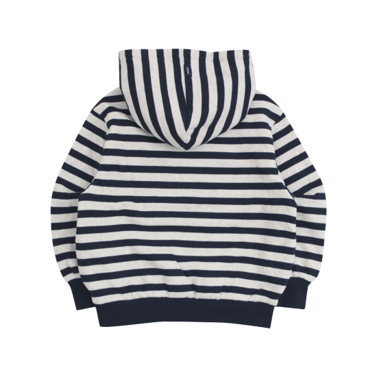 네이비 컬러의 스트라이프 패턴이 멋스러운 후드